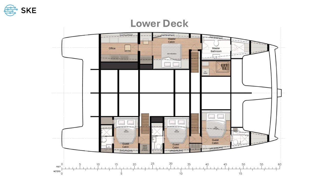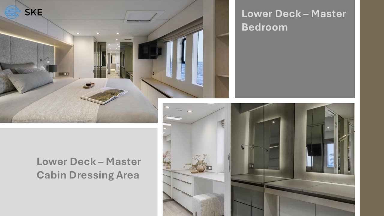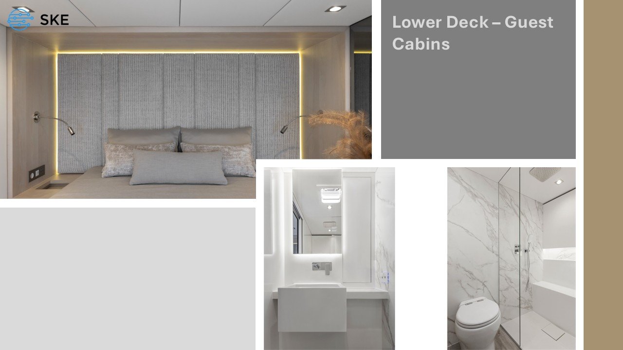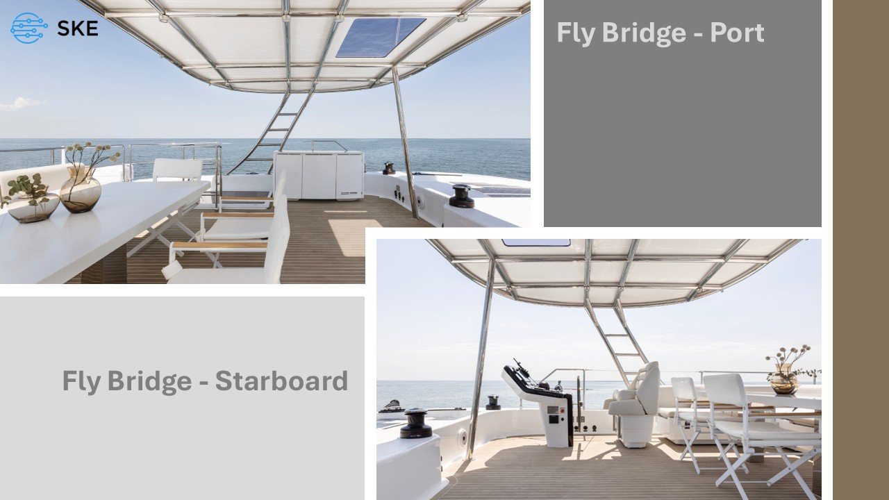 Take a guided journey through every deck, from the open-air Bimini to the lower cabins.